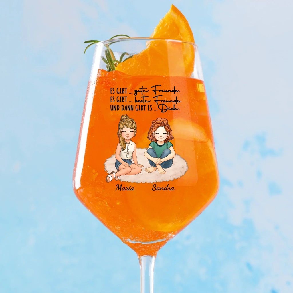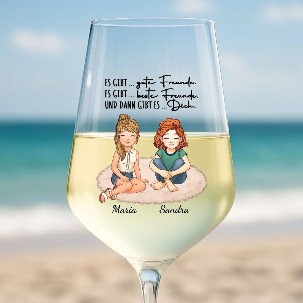 Feiert eure einzigartige Freundschaft mit diesem stilvollen personalisierten Weinglas. Ob beim gemeinsamen Anstoßen, bei Mädelsabenden oder einfach, um Danke zu sagen – dieses Glas macht jeden Moment besonders.